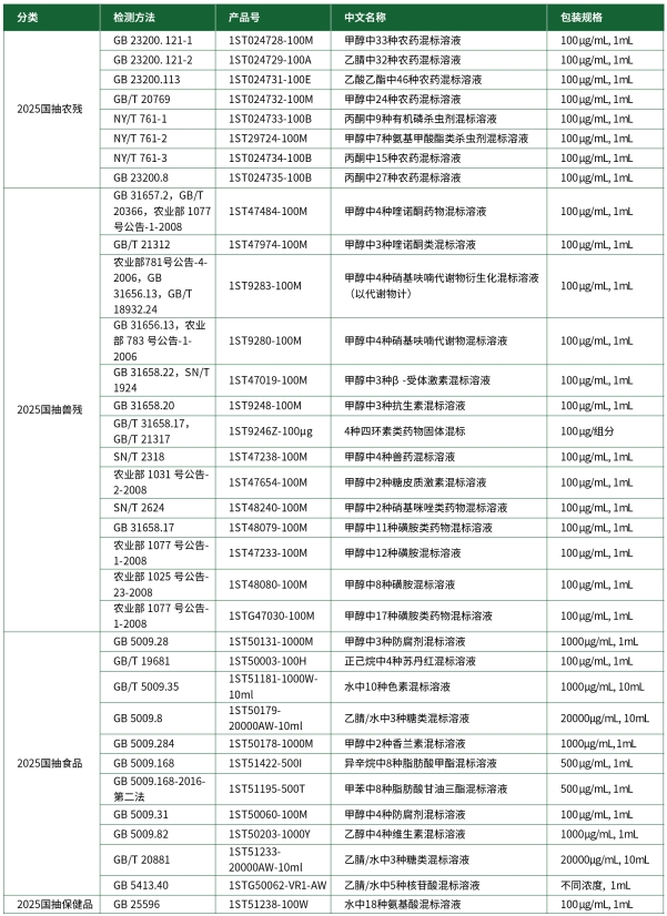 標準物質(zhì)解決方案 | 食品國抽(2025版)
