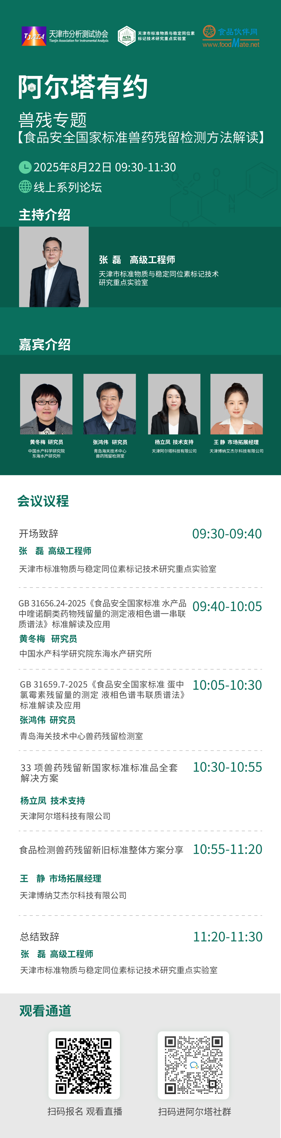阿爾塔有約 | 8月22日!【獸殘專(zhuān)題】食品安全國家標準獸藥殘留檢測方法解讀線(xiàn)上研討會(huì )